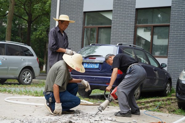 小暑大暑,上蒸下煮。整个暑期校园服务中心的员工或坚守在各自的保障岗位上,或奔忙在校内各个施工工地现场。从路面保洁到弱电工程施工,从行政楼到家属区,从室外的道路、绿地等的施工到室内绿植的养护,他们挥汗如雨,他们马不停蹄,只为“扮靓”校园贡献自己的一份力量。