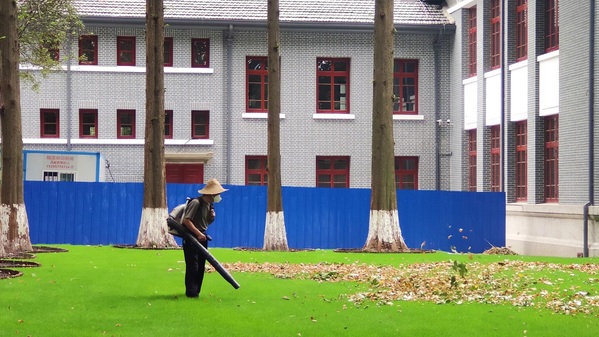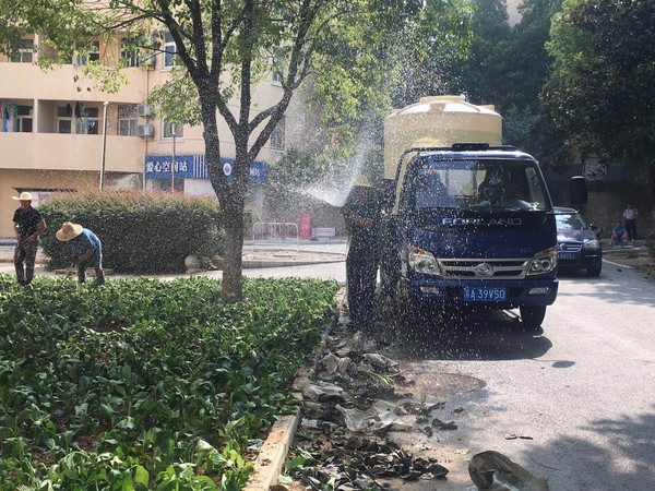绿化保洁方面,两校区除了日常的浇水、防虫、除杂、修剪以外,为了确保校园内的植物能够顺利度夏,校园服务中心的工作人员在暑期加强了对绿植的养护和管理,松土、施肥、浇水、遮阴,他们用自己的汗水浇灌守护着我们校园的每一棵树木,每一片草地。与此同时,中心还对院内危险树木进行了综合治理,切实做好隐患排查、清理、整治工作。
