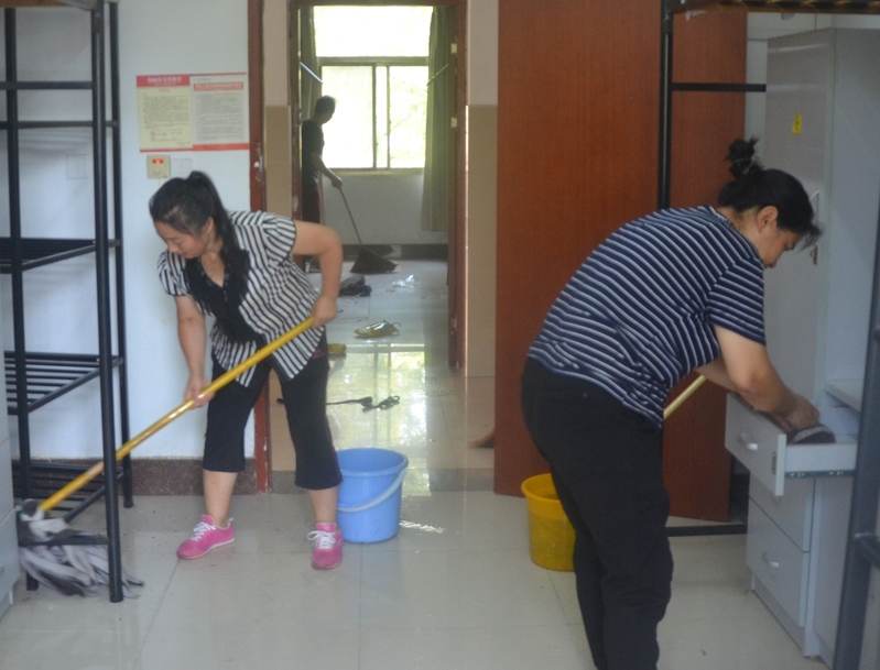 虽值暑期,但为了照顾留校学生,确保暑期多项基础改造项目顺利推进,公寓服务中心员工坚守岗位,毫不退缩。在岗值班员做好查房保洁工作,积极完成各项服务保障工作任务,台风天气,提醒学生关门关窗;查房过程当中,帮助学生把没关好的门窗及时关严。保洁员及时到公寓楼顶清理下水管道堵塞的树叶,减少积水等问题,保障公寓排水畅通。