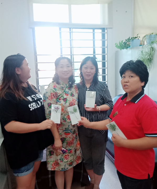 (图为天目湖校区客房部贺淑琴主管为教师们细心准备节日贺卡)