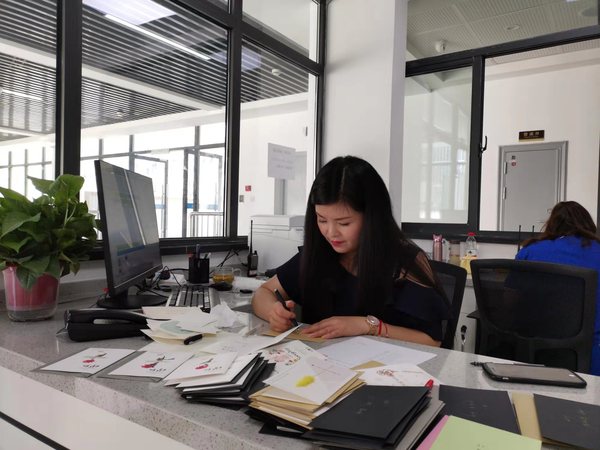 (图为天目湖校区客房部贺淑琴主管为教师们细心准备节日贺卡)