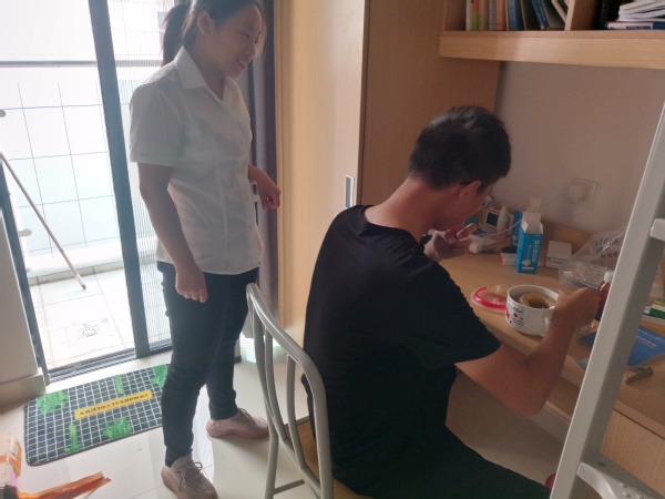 8月31日,来自上海的一位新生腿部骨折,在只有上铺的学生宿舍内,行动极为不便。为了解决他起居困难的问题,公寓的相关负责人与各部门之间紧急协调,帮助他调配了一张单层的单人床。由于担心因伤无法正常行动的学生情绪低落,公寓阿姨们经常去问候他,为他排忧解难,用满满的正能量激励他保持乐观的心态。“把孩子放在这,我们一百个放心”是家长由衷的感叹。