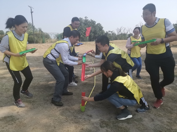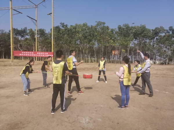 随后,成员们以分组对抗的形式开展了穿越呼啦圈、不倒的森林、同心大鼓、移花接木等拓展项目活动。在拓展活动中,队员们通过游戏中的配合进一步打破彼此间的隔阂,建立相互信任、相互了解的团队氛围。在各项活动中,虽然有不少困难,但是为了能够取得团队胜利,每一名成员都在一次次失败中寻找团结协作获得胜利的方法。