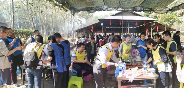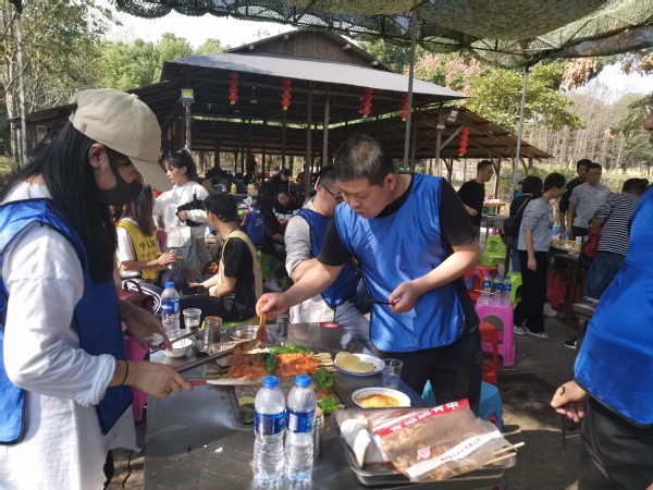 上午拓展训练结束,大伙儿开始张罗起午饭——自助烧烤,大家都忙得不亦乐乎,迫不及待的品尝自己烤出的美味,成功的喜悦油然而生。烤好食材的小伙伴们纷纷跟同伴们分享他们的“厨艺”,大家你来我往相互品鉴,现场欢笑声延绵不断。