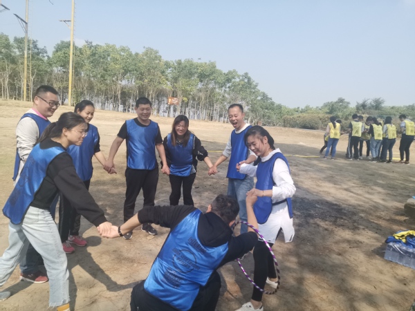 随后,成员们以分组对抗的形式开展了穿越呼啦圈、不倒的森林、同心大鼓、移花接木等拓展项目活动。在拓展活动中,队员们通过游戏中的配合进一步打破彼此间的隔阂,建立相互信任、相互了解的团队氛围。在各项活动中,虽然有不少困难,但是为了能够取得团队胜利,每一名成员都在一次次失败中寻找团结协作获得胜利的方法。