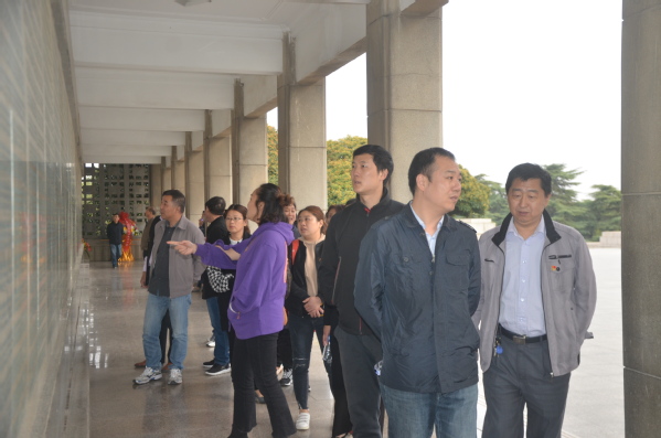 10月26日下午,大家怀着十分崇敬的心情参观了徐州淮海战役教育基地,观摩淮海战役纪念馆新馆、革命烈士纪念碑、战役总前委群雕。纪念馆新馆展品极其丰富,完整展示了当年战役的全貌、记录了一个伟大的历史瞬间、揭示了取得胜利的关键因素及昭示意义。馆内设有序厅、战前形势、战役实施、战役胜利、人民支前、缅怀先烈、全景画馆七大部分,以及“十人桥”、“徐州解放”等15个逼真的场景再现布置。展厅陈列的老照片、蜡像和浮雕生动再现了战役的三大阶段--围歼黄伯韬兵团、围歼黄维兵团、以及全歼杜聿明集团的恢弘气势。大家认真观看展馆陈列图片资料和各类文献资料,回顾光辉的革命历史,无数优秀中华儿女在冲锋陷阵中英勇献身,用生命谱写了惊天动地的英雄赞歌。参观中支部书记王庆德向大家讲解淮海战役的相关历史,教育支部党员要在工作中勤奋努力,在困难面前顶上去,在利益面前让出来,努力保持共产党人的先锋模范性。随后在烈士纪念塔下,支部成员驻足凝思,鞠躬默哀,缅怀革命先辈的丰功伟业,表达对革命先烈的敬仰。