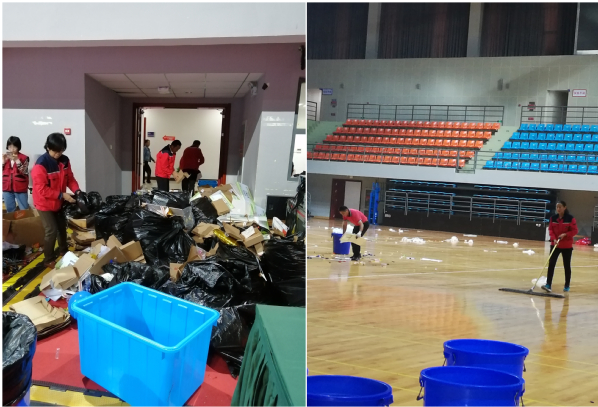 比赛结束后,物业员工同心协力配合做好撤场工作,加班加点清理现场,及时将体育馆的体育课设施物归其位,确保体育馆秩序井然。