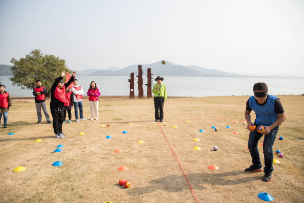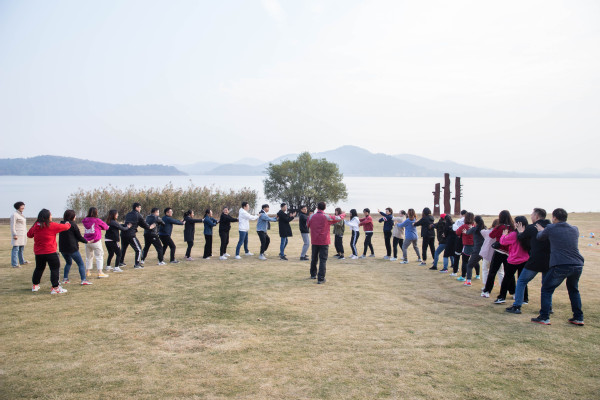 感受着初冬的徐徐凉风,观看着一路秀丽的湖光山色,伴随着伙伴们的欢声笑语,在这个表面看起来风平浪静的拓展活动下,实则进行着一场集毅力、脑力、体力的较量。本次活动为了考验骨干们默契配合的能力与群策群力的精神,分设了四个项目,分别为:破冰启航、沙场点兵、挑战150、高空项目。