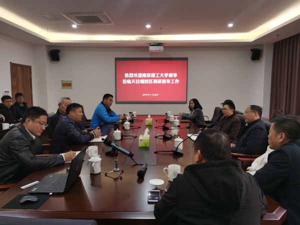 11月28日下午,南京理工大学校长助理陶应勇、后勤服务中心主任宋伟华一行八人来到天目湖校区调研,校区管委会主任江波、副主任王伟华、副主任缪长宗、后勤集团副总经理俞广波、相关中心和部门负责人参加了调研交流会。