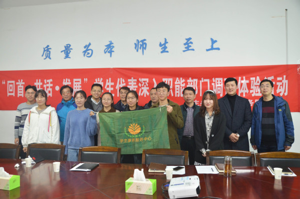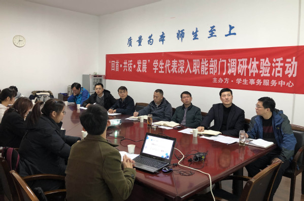 12月25日下午,学校学生事务服务中心联合学生会、研究生会等学生社团来后勤集团调研,举办“回首·共话·发展”座谈会。后勤集团副总经理王国军、相关中心负责人参会。会议由王国军主持。