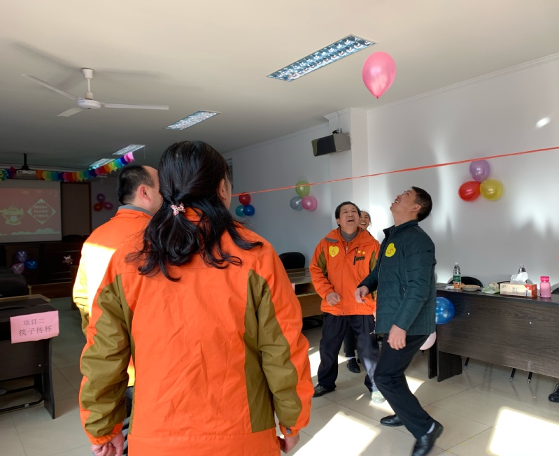 打造优质高效团队,展示团队蓬勃朝气,增进彼此间感情。物管部工作人员精心策划、布置场地,渲染节日氛围,一场别开生面的趣味活动开始了。本次活动设有“气球吹纸杯”、“筷子传杯”、“群龙取水”、“头式排球”、“飞镖投准”五个项目,在“气球吹纸杯”的比赛中,物管部最年轻的值班员秦师傅以19″82的惊人速度,摘得该项目的桂冠;在“筷子传杯”项目中,以中心高主任为队长的一组,经过大家的默契配合,用最快的速度一举拿下第一;接下来的“群龙取水”比赛把现场气氛推向高潮,每组队员商量作战战略,使出浑身力气取水,最终主任助理赵萍所在的组取得了胜利;在“头式排球”和“飞镖投准”项目中,经过几轮的激烈角逐,物管部水电工侯师傅用精准的出手夺得第一。最终,物管部值班员宋清、秦仁群、水电维修工侯燕波荣获“爱心贴”最多的前三名。随后,物管部还组织大家集体观看电影。