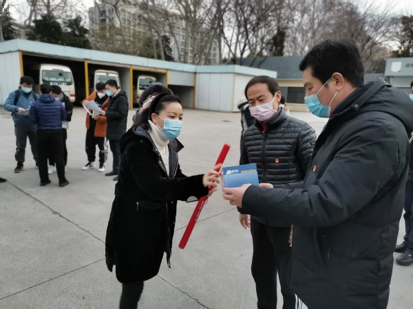 后勤集团党委书记张明勉励本次参与“返航直通车”计划的员工做好防护保障,安全迎接后勤员工返“航”。
