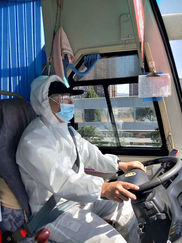 接返程的最后一趟任务直到晚上七点多才结束,接返程组全体成员克服疲劳和饥饿,平安顺利地把后勤员工接返,圆满完成任务。