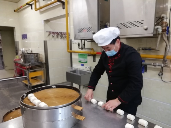 为了保证面团充足的发酵时间,每个寒冷的早晨,太阳还没来得及露头,家人还在熟睡中,他就离开了温暖的家,比上班时间提前半小时来到食堂。从和面、发面再到揉面都是他一个人完成,每一个步骤都一丝不苟,为的就是蒸出的馒头口感更好。疫情期间,市场生鲜一时间供应紧缺,考虑到很多值班老师也面临家庭食材采购困难,他主动加班赶制馒头、包子,热心为教职工打包,面对感谢他总是说:“这些都是我的工作,我做的事不大,但我一定要做好,现在食材比较匮乏,我连馒头都做不好,师生吃什么。”不少疫情期间坚守在岗位上的教职工都成为了他做的手工馒头的忠实粉丝。他就是这样,始终将保障师生饮食需求的责任扛在肩上,践行着为师生服务就是为人民服务的朴素信念,保持着提交入党申请书时的那份初心。