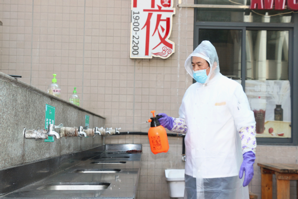 刘先灿,是饮食服务中心将军路校区馨园书香餐厅的厨师长,业务能力过硬的他曾代表后勤参赛并多次获得表彰。在这次防控工作中,刘先灿主动请缨,在接到返校通知后,他驾车300多公里,一路不吃不喝,第一时间赶赴到防控工作一线。在自我隔离结束后,他穿上防护服,戴上口罩,扛起消毒箱,就开始为员工宿舍消毒。在员工连续返校的日子里,他坚持每天定时为员工测量体温,为员工做好每日三餐的订餐,并发放到每个宿舍。刘师傅说:“看到食堂主任每天通宵达旦地忙碌防疫工作,从不叫苦喊累,有事就担,有难就扛,这才是真正的共产党员!”正因为前辈们纯粹的党员形象在他的心中油然而生,刘先灿再次向党组织递交入党申请书,用行动表决心,为人民服务,舍小家为大家。