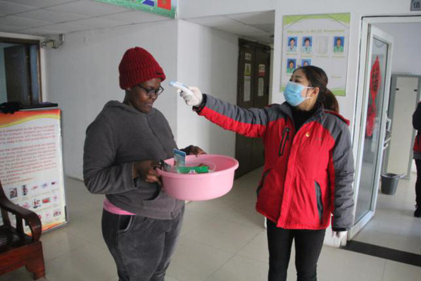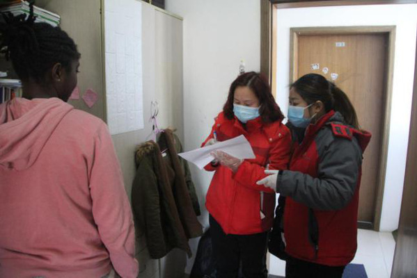 疫情期间,公寓里住着许多留校的留学生。身在异乡的他们,面对突如其来的严峻疫情,身心倍感压力。只要轮到施珍香上班,她总会早早地来到学校,做好个人消毒和测温登记,有条不紊地带好查房记录表、钥匙和红外测温仪,一间间去查房,观察留学生状态,认真测温并记录,嘘寒问暖,提供帮助。有一回,一名叫杜班的留学生说身体不舒服,她为其测温显示正常后,嘱咐其注意休息,并立即将情况报给公寓办公室和留学生辅导员。此后几天,她每天都去关注和问候这名学生,直到学生恢复正常。一个多月下来,她已经认识了楼内所有在校的留学生,留学生们也熟悉了这位时常面带微笑、圆圆脸庞的阿姨,在校园里遇见时都会主动和施珍香打招呼,非常亲切。