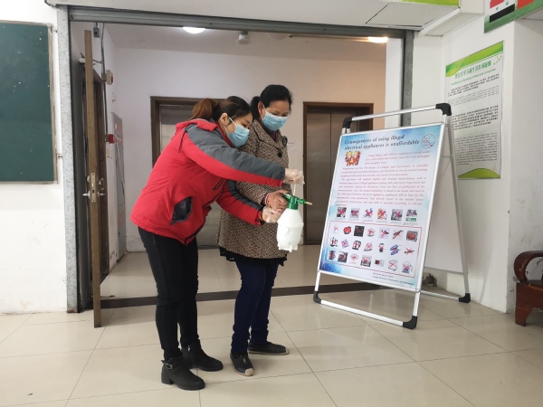她的队伍里有6名员工在校内医学观察,她每天都和员工联系,抽空到住宿点帮他们测温,询问他们的状态,帮他们购买生活用品,给他们讲述国家防疫的情形和学校集团的要求,安抚他们的情绪,帮助员工安稳度过医学观察期。观察期结束,她积极组织员工进行防疫相关工作的培训,一遍遍地教员工如何消毒、记住消毒频次并做好个人防护等具体细致的工作。在她的带领下,员工个人防护工作有序到位,消杀工作落实到位。