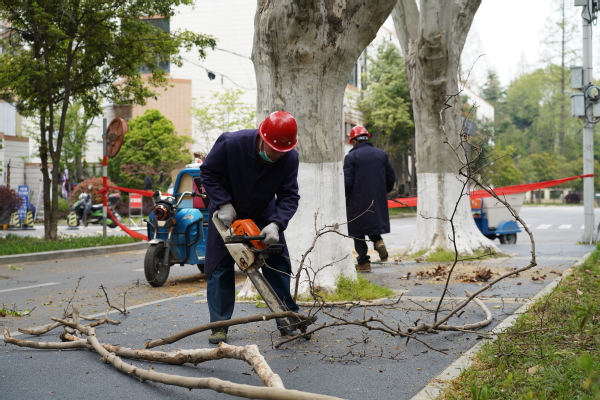 近日,校园服务中心组织员工对梧桐树枯枝进行修剪,避免枯树枝掉落,也降低了病虫害的发生。