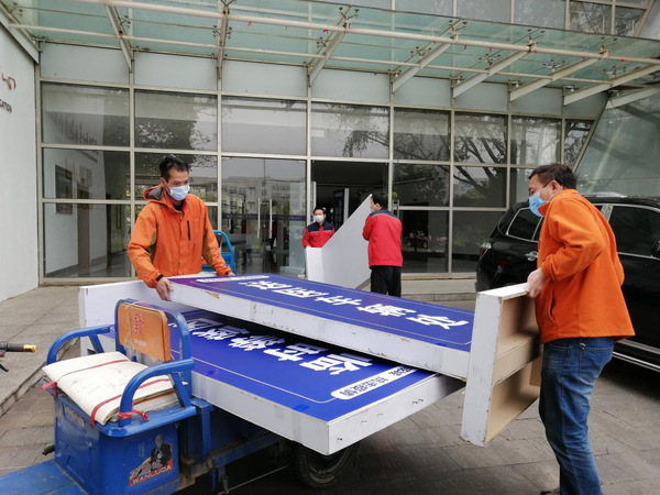 物业管理中心两校区物管部接到志愿服务人员征集通知后,迅速安排协调人员,并针对部门参与志愿服务的职工进行分工。物业的一线职工师傅们服从调配,完成展板搬运、粘贴提示标识、搭设帐篷,布置桌椅、接运学生行李等服务保障工作,有条不紊,井然有序。
