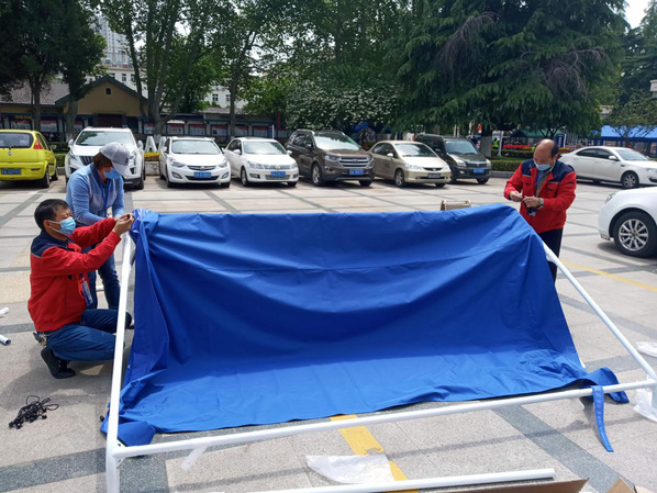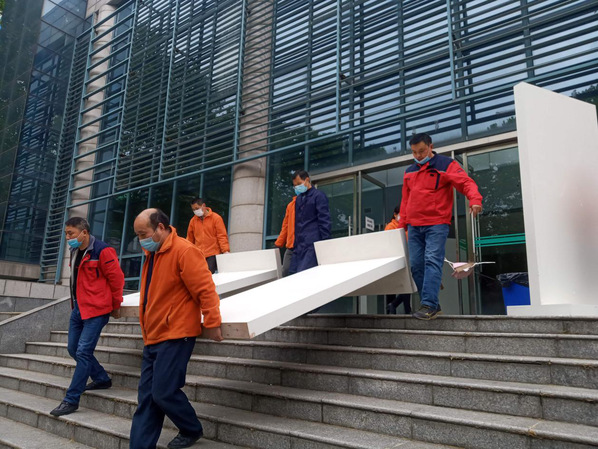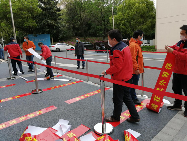 我校应届毕业生分期分批有序返校。4月23日至26日,天气十分炎热,将军路物管部的物业员工身着统一的工作服,未有丝毫懈怠。午后最热的时候,物业人衣服内浸满了汗水,无人诉苦抱怨,他们一切工作从服务学生出发,能吃苦不怕累的思想觉悟让在场所有人动容。5月6日至8日,为了迎接第二批返校学生,预防雨水天气,明故宫物业志愿服务团队齐上阵,连夜搭建帐篷,摆放桌椅,确保入口环境整洁,所有志愿者们不惧肆意飞扬迷人眼的梧桐树毛絮,时刻待命,为每一位返校和离校学生保驾护航。