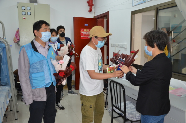 “阿姨,母亲节快乐!”5月9日,公寓服务中心党支部党员与学生组成“爱心小分队”,给学生公寓里的“妈妈”们送上节日祝福,感谢公寓阿姨疫情期间为学生们的辛勤付出。