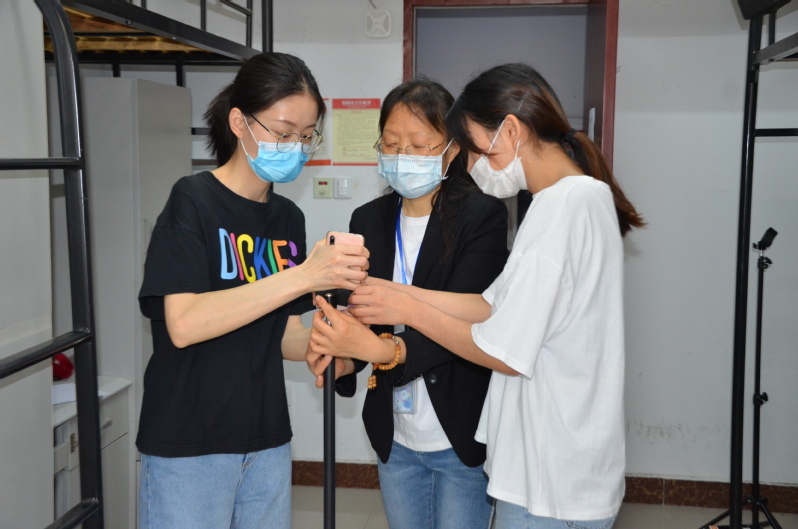 及时干预,顺利排忧解难。为确保每位学生有序、顺利完成面试,公寓员工定时到楼栋里询问备考生的诉求,有效帮助考生应对临时突发情况。B11栋513房间的冯诚能同学在备考时不断翻找书包、重启电脑,公寓员工及时发现、上前询问,原来此同学一直无法连接研究生复试界面,十分紧张焦急;公寓员工立即用自己的手机打开热点尝试与学生电脑进行网络连接,在操作中发现并不是网络问题,随即考虑到有可能是浏览器限制原因,在下载3个浏览器、逐一调试后,顺利地进入到研究生复试界面,连接成功时,在该同学之前仍有2人正在线上排队等待,此时,冯同学焦虑的情绪也在面试前趋于平静。