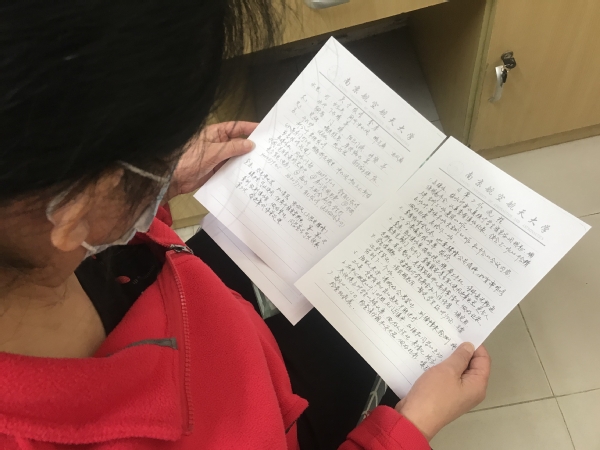 她做事认真。王爱丽自认为能力一般,在工作上,她是绝对的工作狂,这个评价是她爱人说的。疫情期间,有很多防疫提醒需要张贴,B17幢学生宿舍都是独立卫生间,光是“七步洗手法”就要张贴200多张;900多个床位都需要张贴警示标贴,她没有叫苦,而是利用休息时间,在开学前一张一张全部贴好。B17幢涉及到的学生有本科、研究生、博士生,类型比较多,毕业、搬迁、迎新、临时住宿的工作量也比其他楼栋更大,多年来,靠的是勤恳的态度,惊人的毅力,让学生们都感受到了家一般的温暖,就像王爱丽说的“喊了这么多年的阿姨,怎么也要把毕业生安全地送走。”