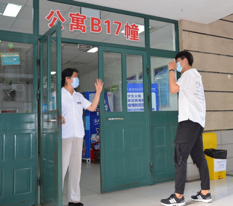 “阿姨,我戴着口罩你都认得出来啊,你太厉害了吧。”因疫情经历的漫长寒假,学生回到楼栋,王爱丽站在B17幢门口迎接,一下就喊出了学生的名字。“看你的身影我都能认出来。”王爱丽笑着说。