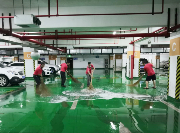 将军路物管部值班人员在巡查中发现东区地下车库出现积水情况,物管部接报后,立即组织部门抢险突击队员到现场清扫积水,确保车库内车辆安全与停车秩序不受影响。物业人在闷热潮湿的天气,用行动守岗尽责。