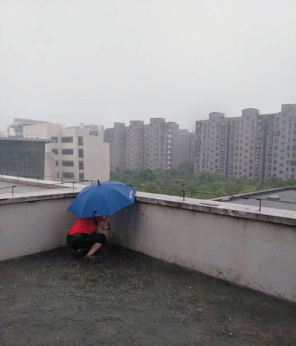 15日上午的强降雨,为防止楼宇顶层出现排水不畅以及下水管堵塞的情况。两校区物管部工作人员及时对阳台、天台上的地漏、下水管道等处进行疏通,避免因大量雨水冲带的杂物产生堵塞隐患。