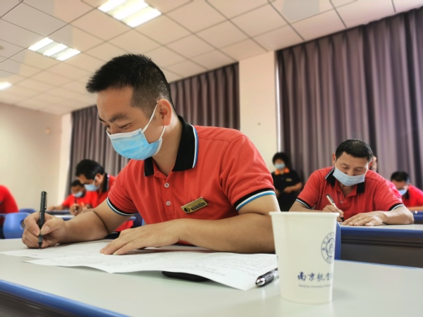 本次比赛采用笔试答题方式进行,以秩序员日常工作中应知应会的内容为测试范围,涉及到日常值班、安全知识和突发事件应急处理操作,以及疫情防控知识。比赛经过精心准备,细致筹划,统筹安排。现场设置签到处、计分处、计时组、后勤组和评分组。中心领导现场参与活动监督并进行阅卷打分。