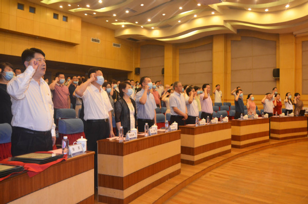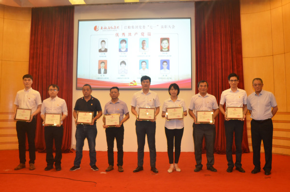 表彰大会由后勤集团副总经理俞广波主持,大会在庄严的国歌声中拉开帷幕。后勤集团副总经理李辉带领新党员宣誓,全体党员庄严地举起右手,对党宣誓。