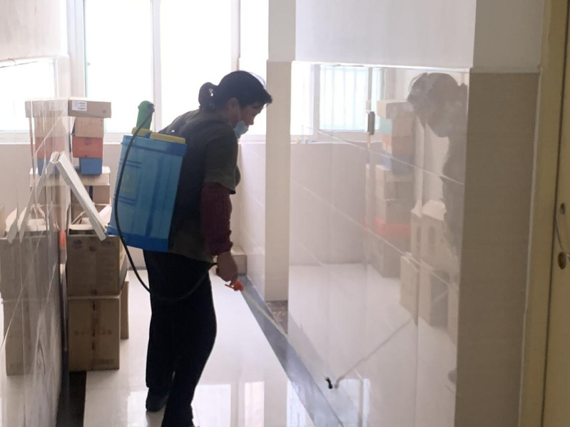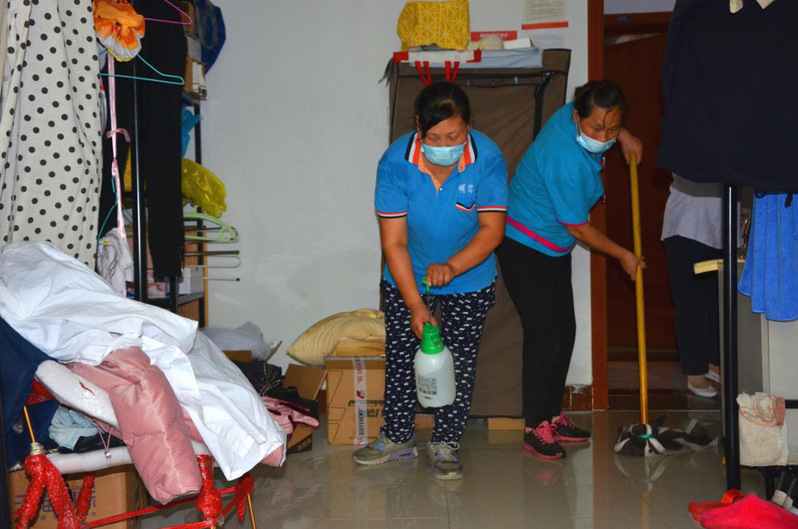 除了疫情,今年超长时间的梅雨季,学校领导十分担心未返校同学的宿舍情况,长时间的空置加上天气导致的霉变,势必将影响同学们的身体健康。为此,根据学校相关工作的总体安排,公寓服务中心集中力量,分别在明故宫校区和将军路校区,对未返校同学房间进行开窗通风,同时对房间地面和公共区域进行深度的清扫保洁和杀菌除霉工作。根据校医院的指导,保洁员们先将宿舍的整体环境进行保洁,然后用稀释过的84消毒液,对宿舍的地面进行消杀。对于公共区域的清洁,保洁员们也是不放过任何一个卫生死角,做到精益求精。