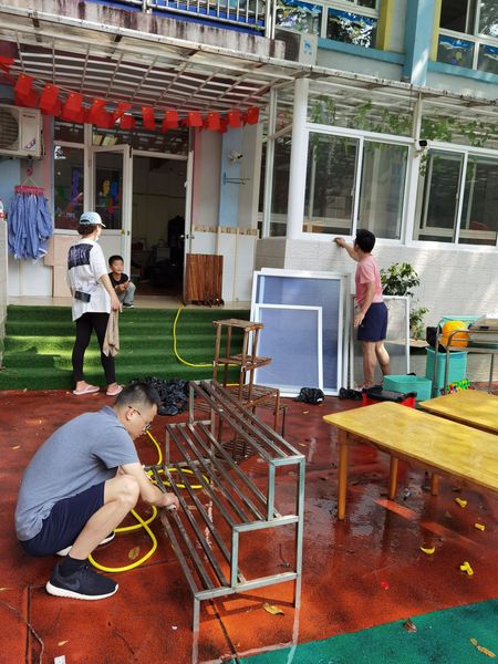 为了给孩子们创造一个舒适、干净、整洁的学习生活环境,8月23-24日,全体教职工和部分学生家长志愿者们积极主动地投入到开学前园舍环境卫生清扫工作中。全体教师和家长志愿者们活跃在园舍的各个角落,全面清理各处卫生,打扫卫生死角、清洗玩具、擦拭床铺、集体晾晒等,炎炎烈日并未阻碍大家认真、细致地打扫清理工作。在家园的共同努力下,园舍环境焕然一新。