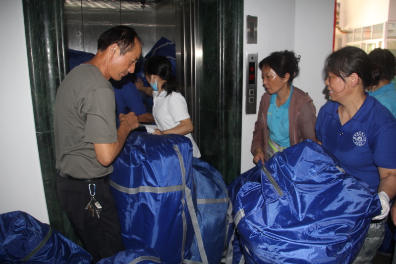 公寓员工将学生所需2600套卧具按期运送、定点放置,保证提前报到学生的销售发放。提前叮嘱管理员对床位有不同需求的学生进行个人信息登记,获取1.9米以上身高学生的信息,及时进行加长床的调配更换,保障学生舒适居住。公寓阿姨了解到两位新生因个人身体原因,无法使用高低床,公寓服务中心立即主动联系学院,当即整理出了一间爱心宿舍,安排两位同学住进爱心宿舍;同学也不禁感叹“背井离乡来到南京,家长们难免会不放心自己,但因为有宿管阿姨们的爱心加持,以后在南航的日子肯定会变得更加甜。”