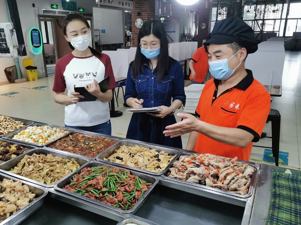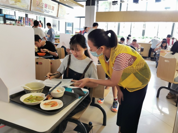 调研中,课题小组聚焦食堂工作中存在的不足或重点难点问题,分别从节能降耗、安全卫生、成本管理和健康饮食四个方面入手,制定研究计划、吃透研究问题,全方位、多层次、多渠道的开展调研。为收集一手数据资料,课题小组深入到食堂一线了解情况。薛伟先后实地走访7个食堂,了解各食堂硬件条件、季节变化、员工节约意识、设备维修保养等耗能影响因素;郭娟通过问卷调查、实地观察和问询的方式,对将军路校区5个食堂的大厅卫生和餐具餐盘卫生进行对比研究;周琳玉和秦闪闪利用调查问卷摸底,并多次与明故宫校区食堂主任、厨师长、网点负责人、网点员工等6类人群进行面对面交流,全面了解和掌握大伙食堂与网点的成本管理差异;孙娟从食堂消费群体入手,运用问卷调查、访谈等方法,了解师生的健康饮食需求和饮食观念。据统计,此次课题调研涉及11所食堂的20个关键问题点,课题小组共发放调查问卷近400份,有效率达95%。