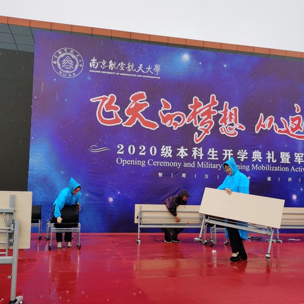 9月15日上午,南京航空航天大学2020级新生开学典礼在将军路校区西区体育场隆重举行。将军路校区物管部积极配合学校典礼工作部署,提前筹划现场布置方案、现场环境卫生及消杀保洁等各项后勤保障工作。