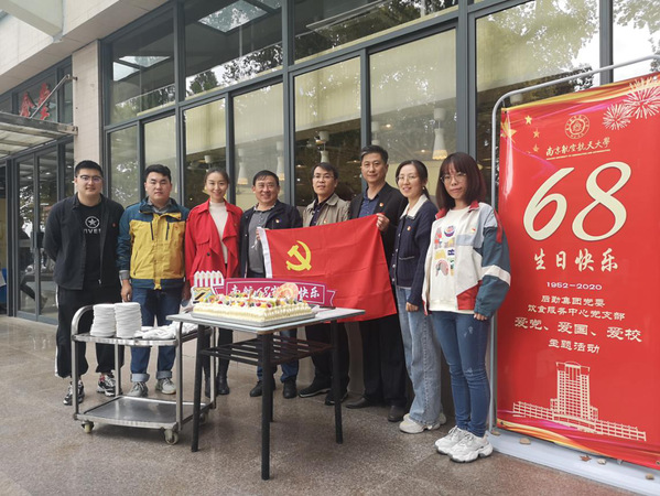 光阴荏苒,春华秋实。2020年10月20日,南京航空航天大学迎来了她的68岁生日,为与全校师生分享校庆的喜悦,传递对学校的美好祝福,饮食服务中心党支部举办了“爱党爱国爱校”主题活动,与师生同享美味生日蛋糕。