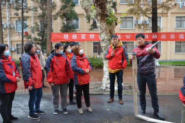 为进一步强化明故宫校区公寓全体员工的消防安全意识,提高员工防火救灾的实战技能,12月4日上午,公寓服务中心在明故宫校区开展消防培训和消防疏散演练。本次活动也邀请到校保卫处消防科梁润科长、陈斌老师等为全体员工进行面对面培训和现场实操演练。