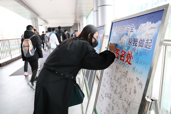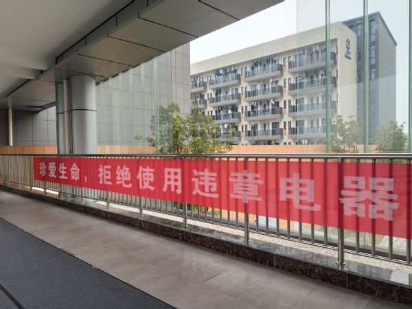 暮秋尚未结束,寒冬已悄然而至。这是最让公寓管理员头疼的季节,因为各种功能的电加热设备会借着帮助同学们“御寒”的名义在宿舍内暗流涌动。虽然管理员们坚持日查房、周汇报,但是随着冬季来临,公寓内人走不断电、拖线板串联、使用违章电器等不安全用电行为日渐频发、屡禁不止。 为了提高同学们的安全意识和责任意识,消除宿舍电器安全隐患,营造良好的宿舍环境,天目湖校区后勤服务中心策划了以“珍爱生命,拒绝使用违章电器”为主题的宣传签名活动,并于11月24日如期举行。