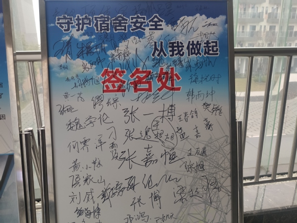 活动现场分置了“违章电器展示区”、“案例警示区”、“签名起誓区”三块主题区域。违章电器展示区展示了管理员们收缴的各类违章电器;案例警示区简述了几起校内真实发生的因使用违章电器而引发的火灾事故;签名起誓区,同学们积极签名,留下了“守护宿舍安全,从我做起”的坚定决心。