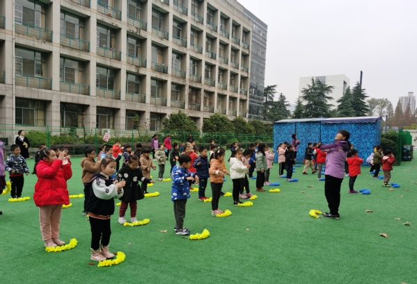 在欢快和富有节奏的律动中,孩子们服装整齐,精神抖擞,排着整齐的队伍,踏着有力的步伐进场,在老师的带领下,动作整齐到位,队形变化有致,时而高高跃起,时而转动身体,他们跟着音乐舒展着优美的动作,跳出了孩子们的童真与童趣,更展示出了孩子们健康活动、积极向上的风采。孩子们专注的神情和纯真的笑脸感染了在场的评委和老师,大家纷纷对孩子认真的态度表示赞叹。