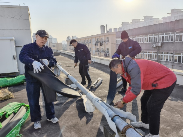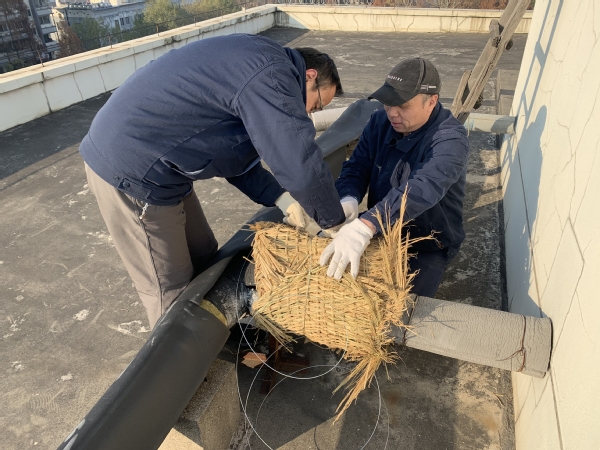 明故宫校区对楼顶室外水管进行覆盖草帘保温