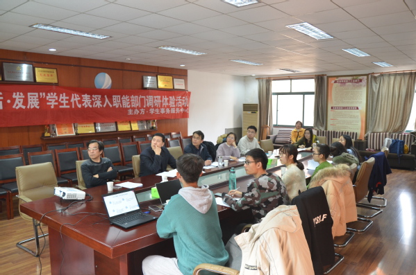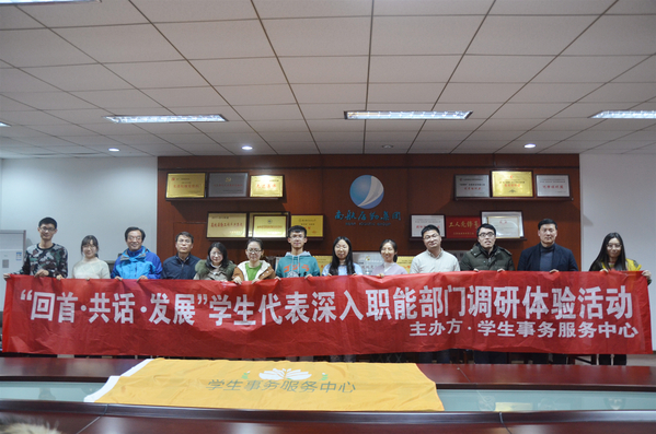 12月24日下午,学校学生事务服务中心联合学生会、研究生会等学生社团来后勤集团调研,以“回首·共话·发展”为主题召开座谈会。后勤集团副总经理王国军、相关中心负责人参会,会议由王国军主持。