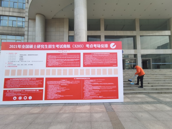 2021年全国硕士研究生招生考试于12月26日至27日举行,我校将军路校区作为考点之一,共设153个考场,分别在将军路校区A1、A2、A4、A6、A7共计5栋楼宇。为确保南航考点考试工作安全顺利进行,将军路物管部按照学校要求,提前布置和准备各项服务保障工作,对考试服务需要注意的问题进行细化和落实,对考试楼宇的设施设备进行全面检查,确保考试工作的顺利开展。