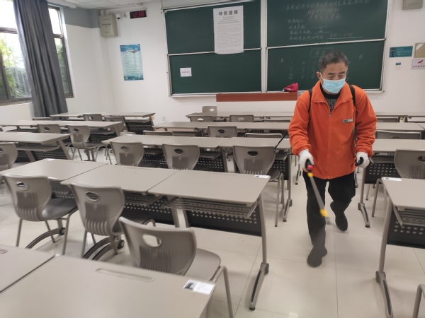 考试结束后,为保证第二天学校教学正常进行,物管部员工加班加点清除考场张贴物,清扫教室垃圾,将课桌椅全部还原到位,并做好卫生消杀工作,为师生们提供整洁明亮的教学环境。本次考试服务保障工作的顺利完成,展示了后勤物业服务的执行力,以及物业人爱岗敬业、吃苦耐劳、团结协作、乐于奉献的精神。部门将继续加快物业服务专业化发展步伐,不断提高管理水平,提升服务质量,努力为学校教学科研工作提供有力保障,为广大师生的学习和生活提供优质服务。