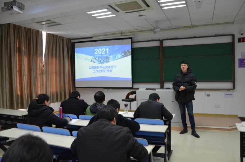 1月13日上午,公寓服务中心在明故宫校区7号楼713教室召开首期青年骨干工作述职汇报会,中心领导、及所有管理骨干参加了本次会议。会议由中心主任助理王子瑜主持。