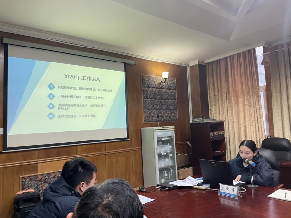 后勤集团党委副书记侯贵菊为物业管理中心全年工作总结了三个关键词:一是感谢,这一年中心班子集思广益新点子,各主管勇于担当落实起作用,管理团队守岗尽责获认可,物业管理中心焕发新面貌,一线员工增加幸福感;二是期待,希望物业管理中心在新的一年,有新气象、新作为;三是祝福,疫情防控一刻不可懈怠,每个人都要做好个人防护,安全管理工作压实责任,祝福全体员工过好平安幸福年。