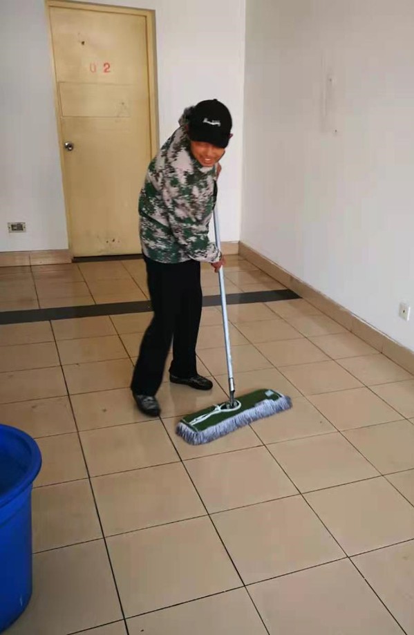 新年新学期开学,是新的开始。全体服务部员工在主管刘静静的带领下,热火朝天的清理着一个假期堆积的灰尘、蜘蛛网、落叶等垃圾。有的阿姨拿着抹布在认真的擦玻璃、门窗,有的阿姨拿着鸡毛掸子在清理门厅、走廊上蜘蛛网。保洁员师傅们更是一遍又一遍的清扫走廊、楼梯等公共区域地面的落叶、灰尘等,清扫干净了,再一遍一遍的拖地,直到把地面拖得干干净净。