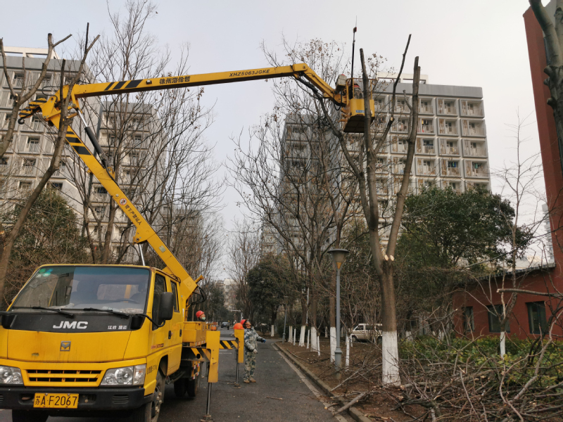 校园服务中心快递超市员工每日坚守岗位,按要求做好邮件包裹的防疫措施,寒假期间处理近3万件包裹,保障在校师生的寄取需求。绿化队利用假期校园人员较少的机会,对将军路校区馨园宿舍区94株大树进行修剪,消除安全隐患,维护校园环境。